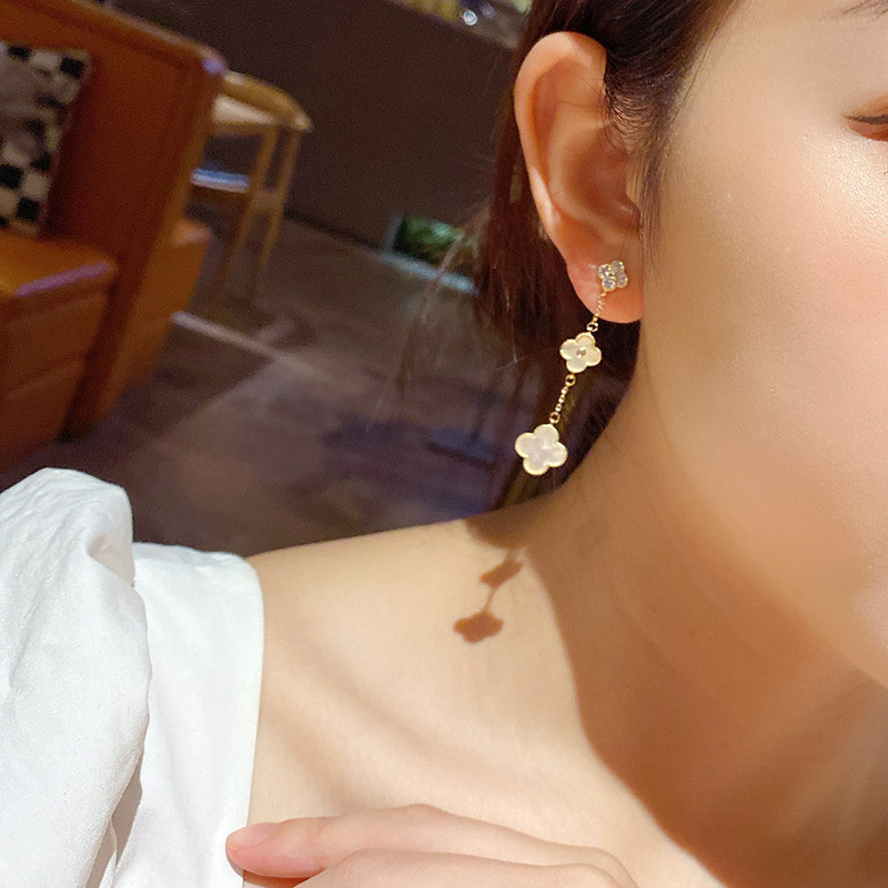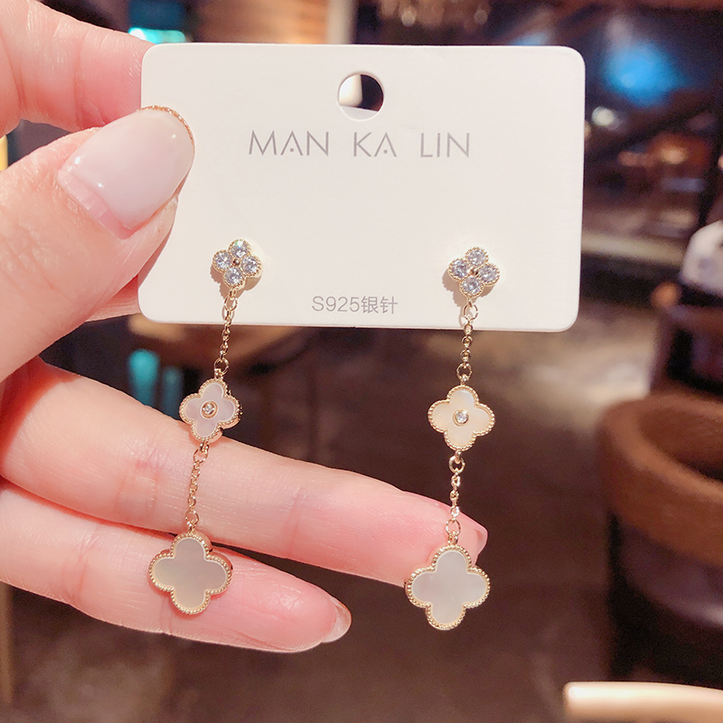 2022 New tide net red hundred long earrings with simple style fashion ear decoration silver needle minimal flower ear crash woman
