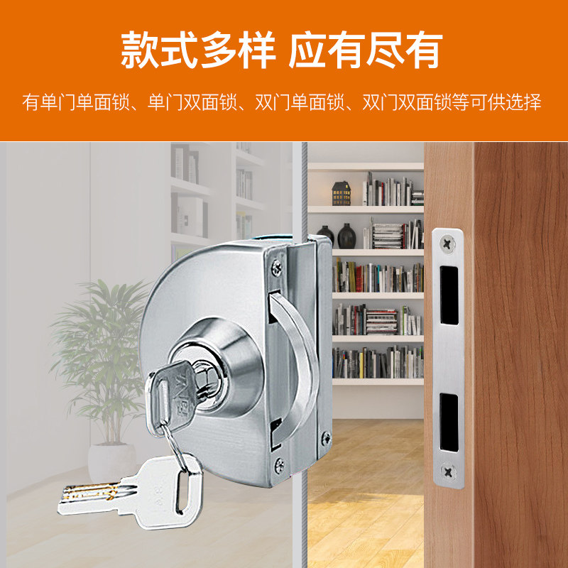 Stainless steel glass door lock single door single open double door double switch lock frameless sliding door shop office U-shaped lock