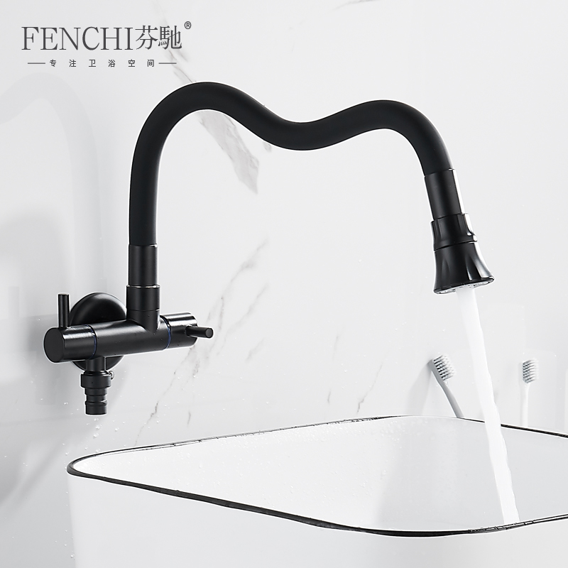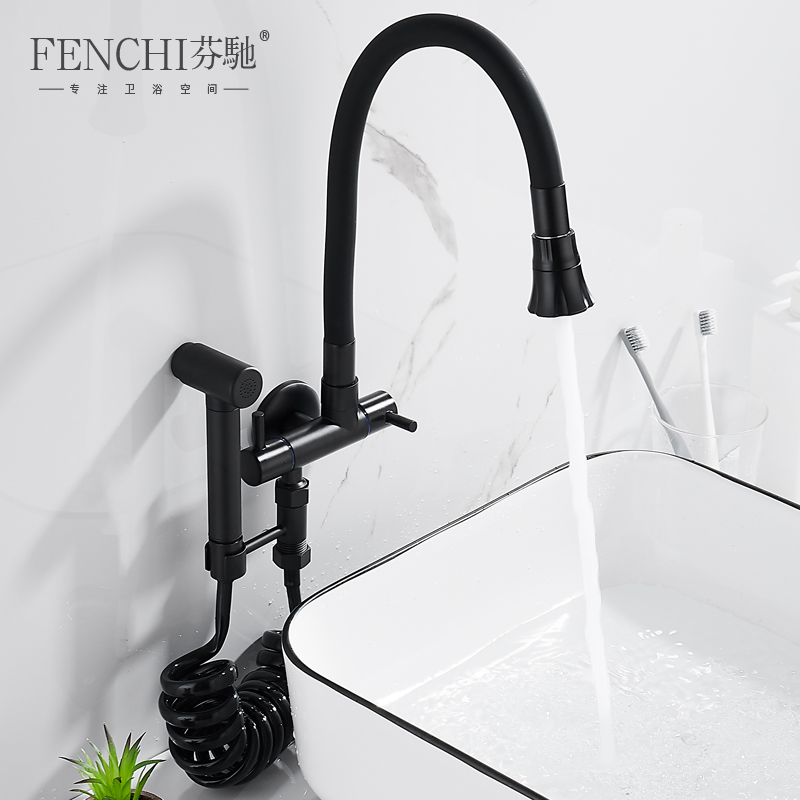 Fingucci Black one-in-two-out three-way universal rotating mop pool tap Home lengthened washing machine Water splitting valve