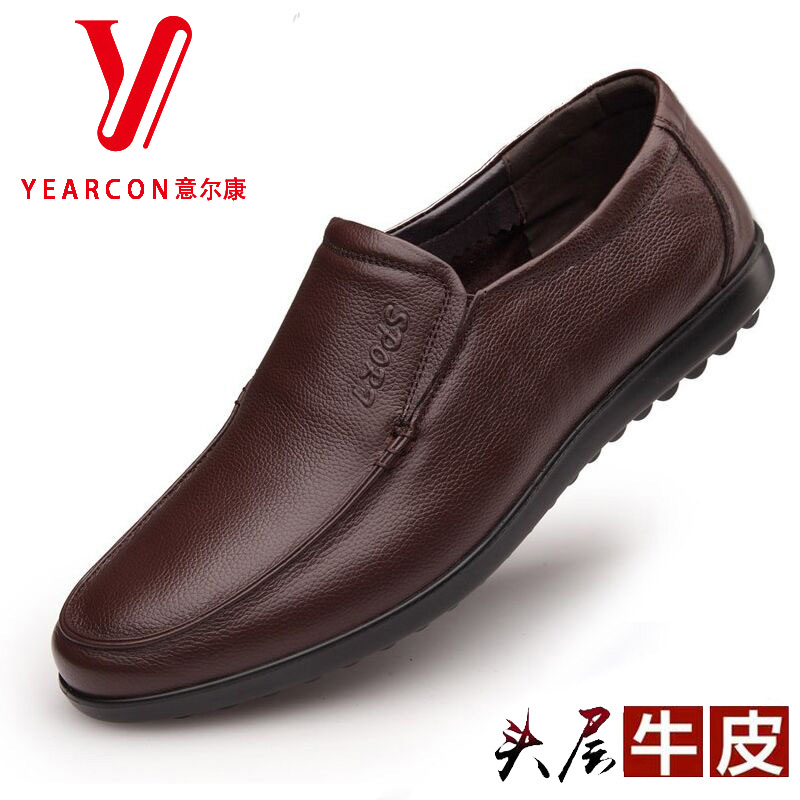 Yerkan Men's Shoes Genuine Leather Casual Head Layer Cow Leather Daddy Shoes Soft Base Anti-Slip Breathable Mid-Aged Father Leather Shoes Man