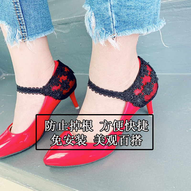 Lace heel cover anti-dropping shoes, large high heels, no heel, no installation, lace, fixed artifact, strap accessories