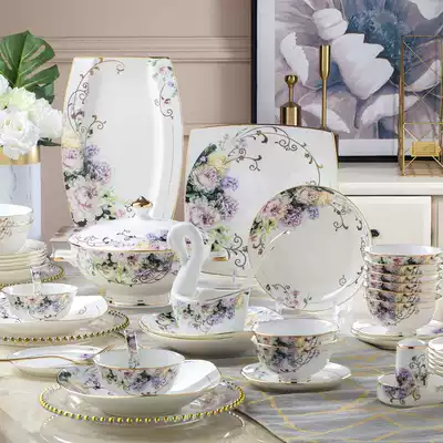 Dish set Household light luxury European-style modern Jindezhen ceramic bowls, chopsticks and plates creative high-end bone China tableware