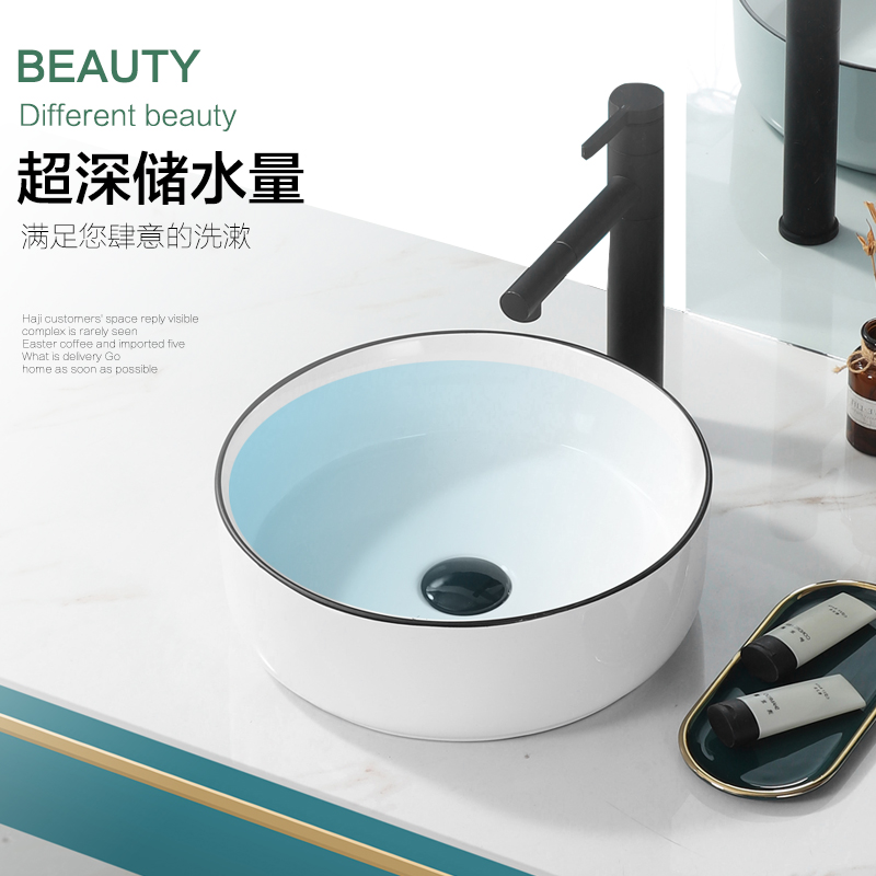 Terrace Basin Wash Basin Home Single Sink Ceramic Washbasin Balcony Round Small Size Face Basin Light Lavish Wash Basin