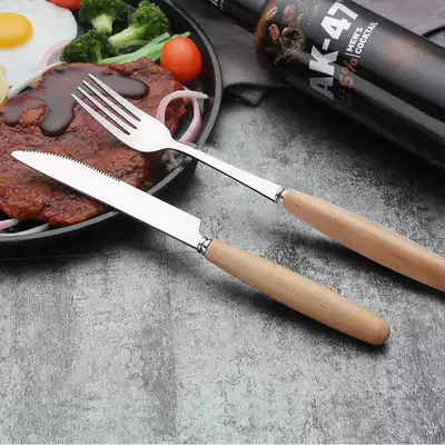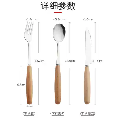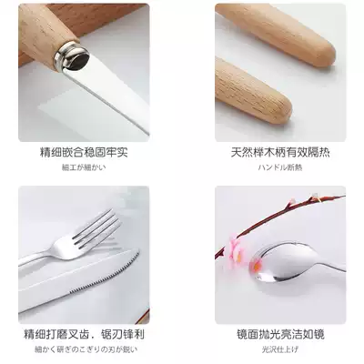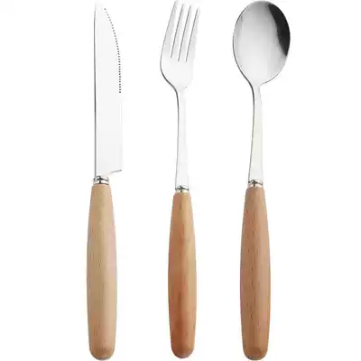 CAMUZ knife, fork and spoon three-piece Japanese Western tableware household set steak knife, fork and spoon wooden handle spoon