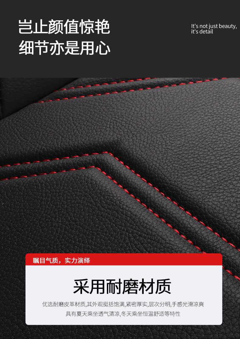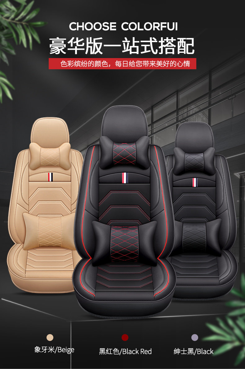 The seven-seater standard version of the whole car is black and red. The five-seater standard version. The seven-seater standard version of the whole car is ivory. The deluxe version has two headrests and two lumbar support. The standard version does not have headrest and lumbar support. There is no difference in material. Full