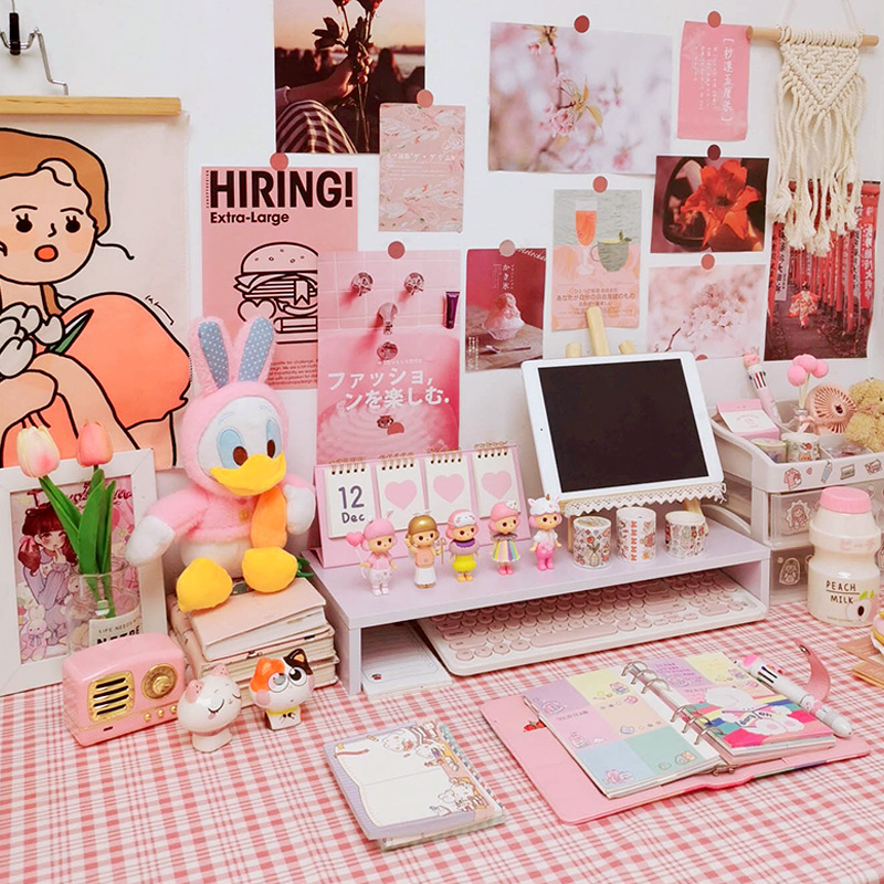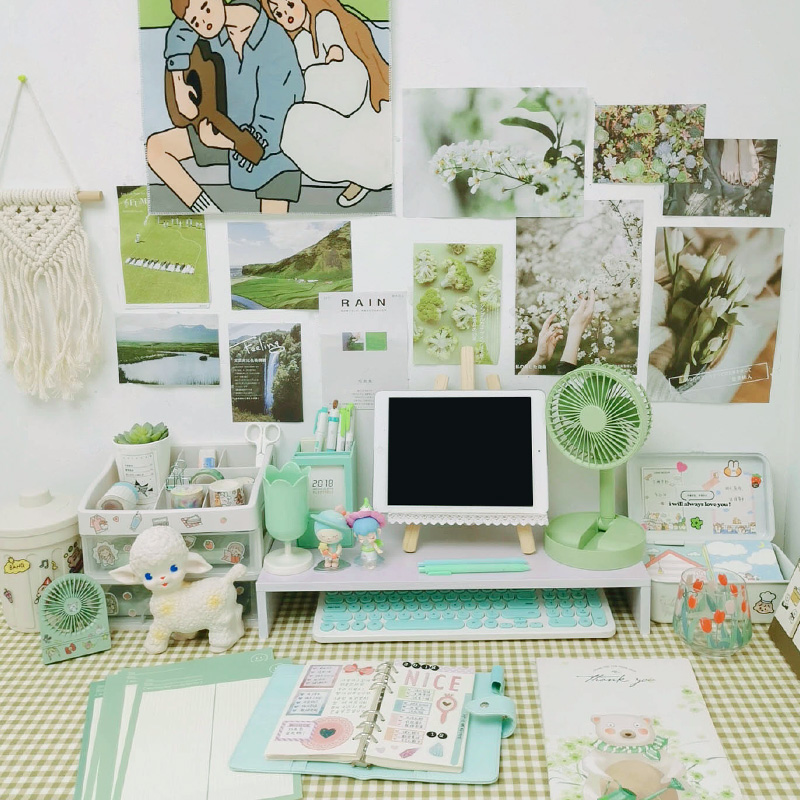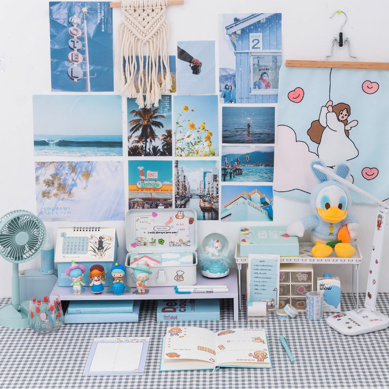 Blue Department Desktop Suite Pink Ensemble Tabletop Suit Green Ensemble desktop suit Yellow Department Desktop suit Large soft board Large bracket (21X28cm) Miwhite trash can sticker white triple layer