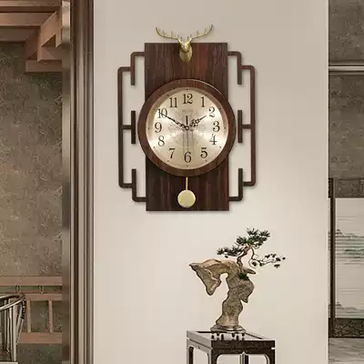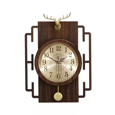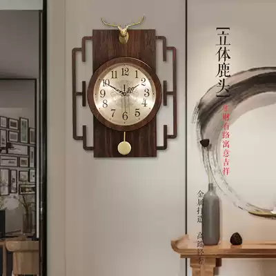 New Chinese wall clock modern living room decoration clock Chinese style creative atmosphere deer head pendulum light luxury mute wall clock