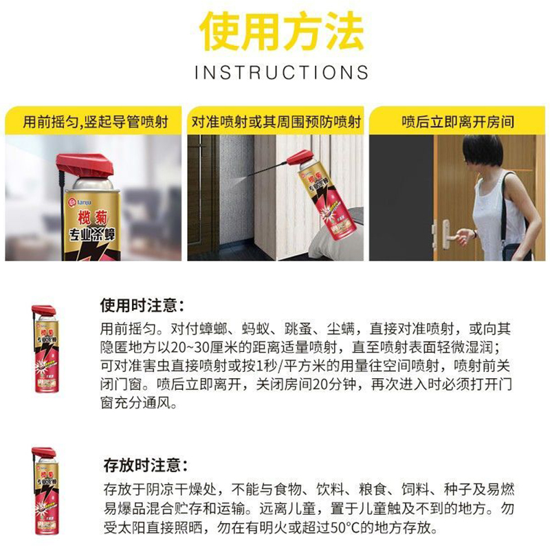 Rukiju Kills Cockroach Spray with catheter No incense aerosol Indoor powerful insect repellent cockroach kill cockroach Cockroach Cockroach big bottle
