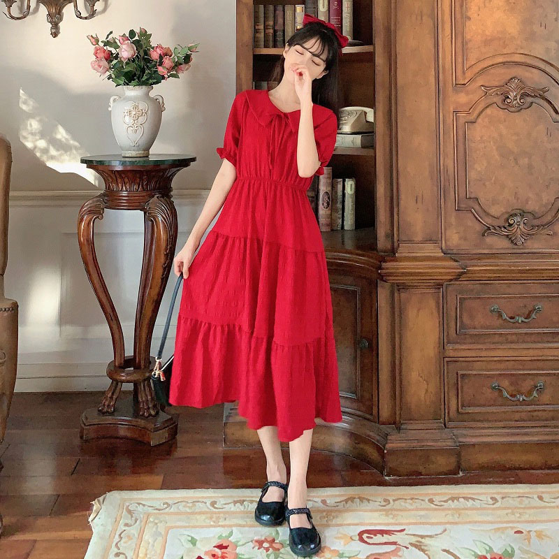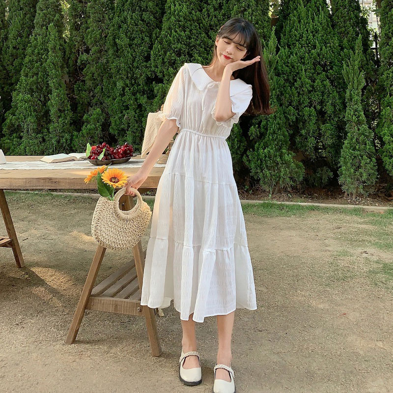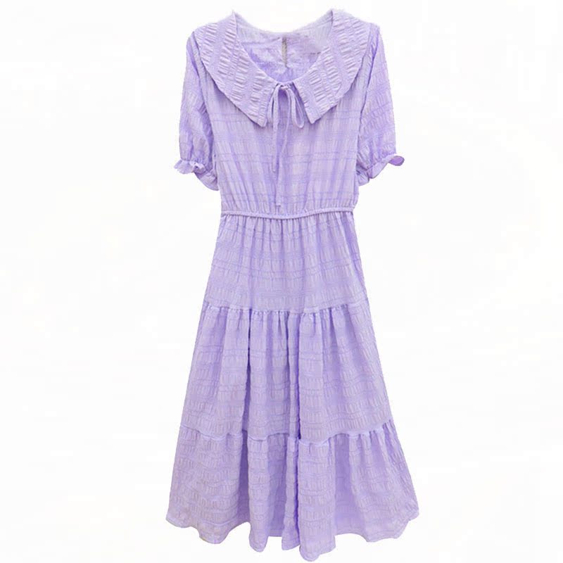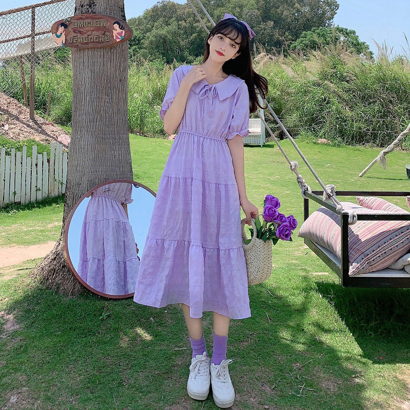 Bubble sleeve dress woman 2022 new summer dress to show thin temperament of mountain wind French potato purple skirt
