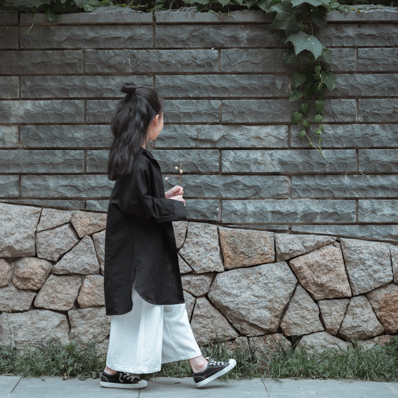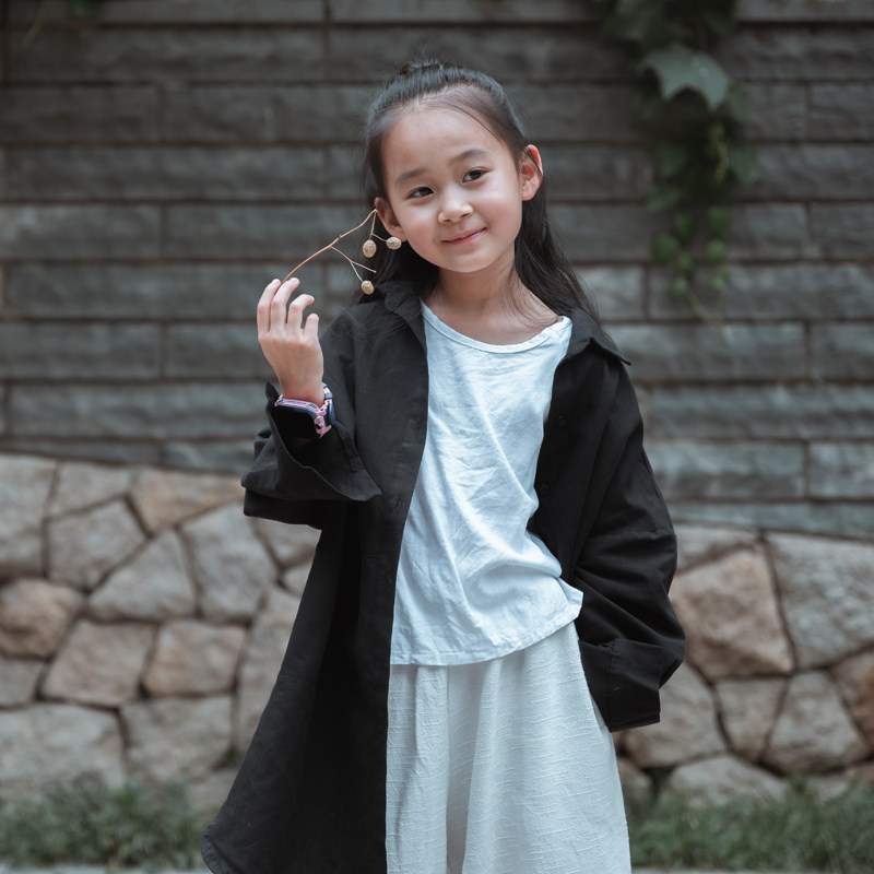 Remembrance Children's Cotton Linen Shirts Mid-Length Shirts Versatile Casual Coats Tops Shawls Children's Middle Children's Big Children