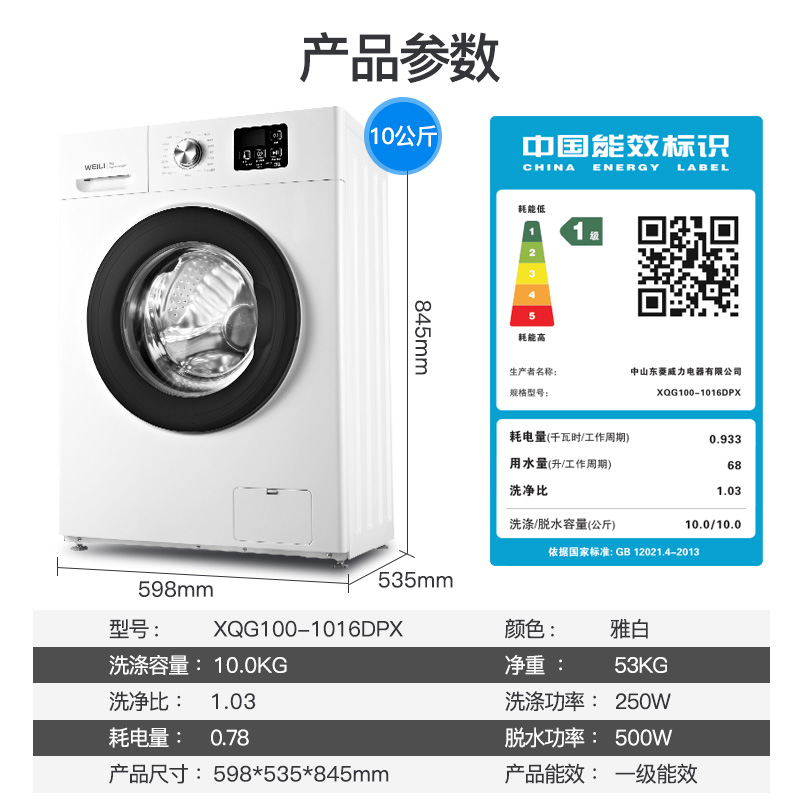 Power 10kg kg fully automatic ultra-thin frequency conversion drum washing machine Home Large capacity High temperature degeria 1016DP-Taobao