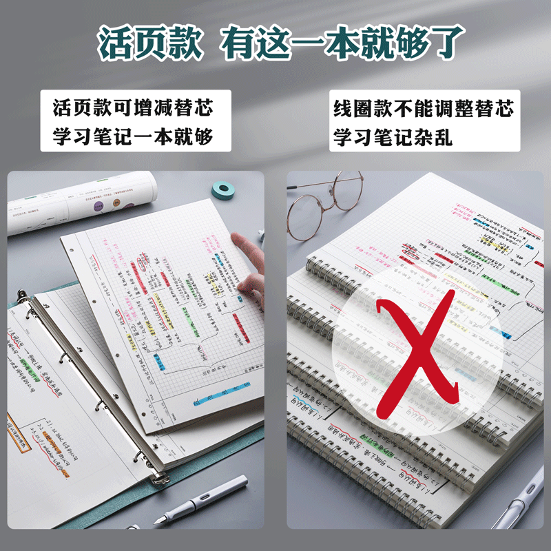 Simplified and traditional a4 mind map notebook loose-leaf book removable buckle soft leather notes special horizontal simple College student entrance examination b5 with template square book large Cornell grid book