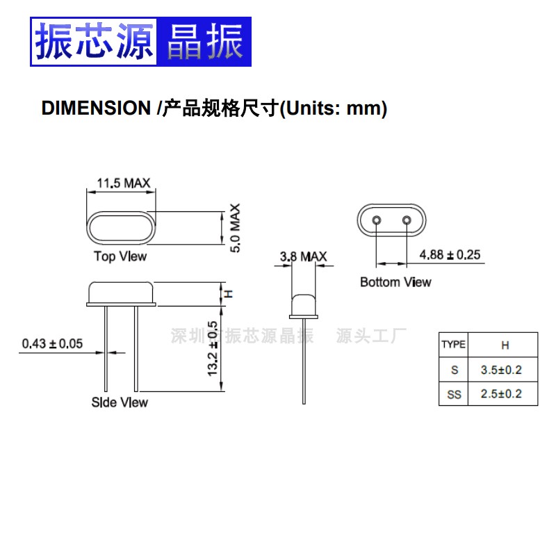 Straight insertion crystal oscillator HC-49S-13 52127MHZ 20PF remote control radio frequency passive quartz crystal resonator 2 feet