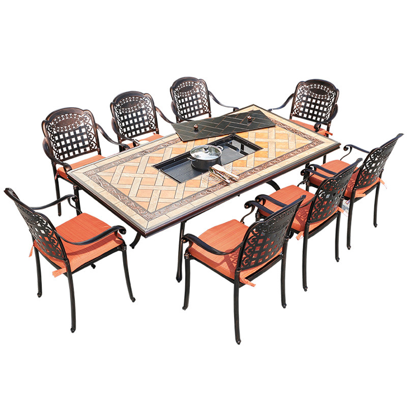 Outdoor BBQ Table Chairs Home Terrace Sky Outdoor Leisure Dining Table Courtyard Balcony European Style Villa Cast Aluminum BBQ Grill
