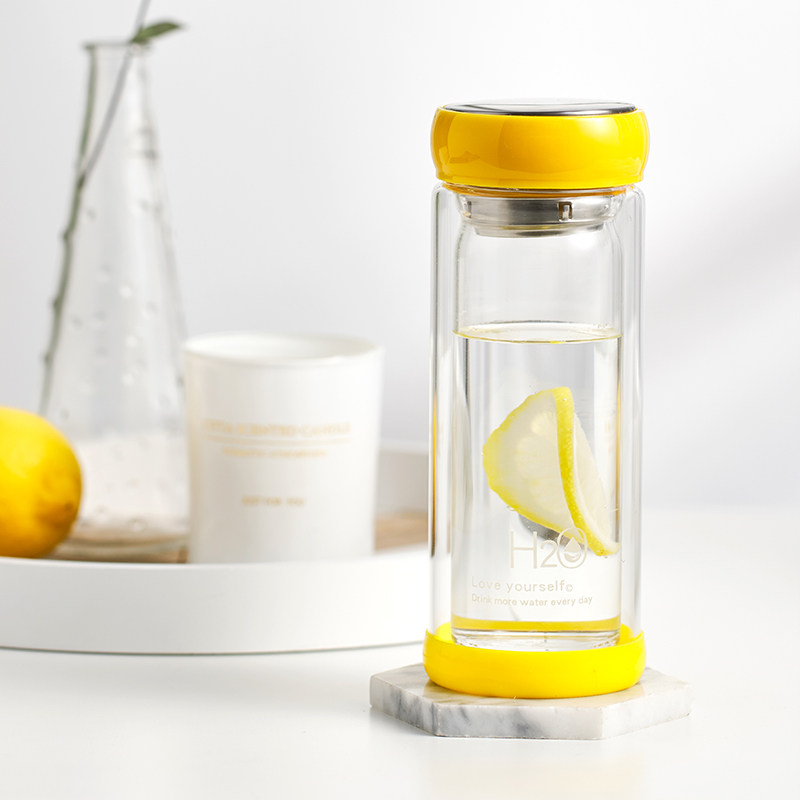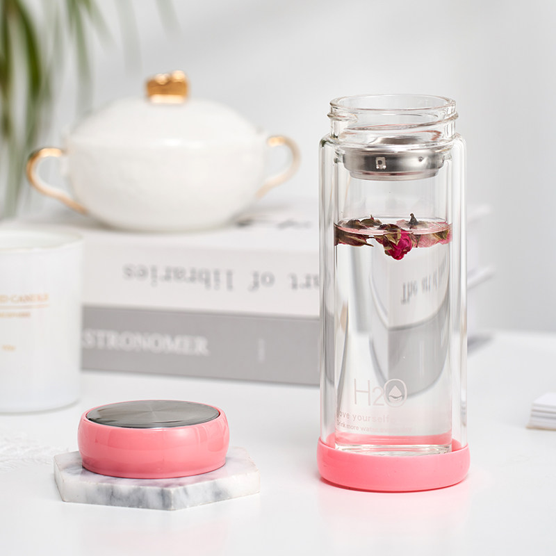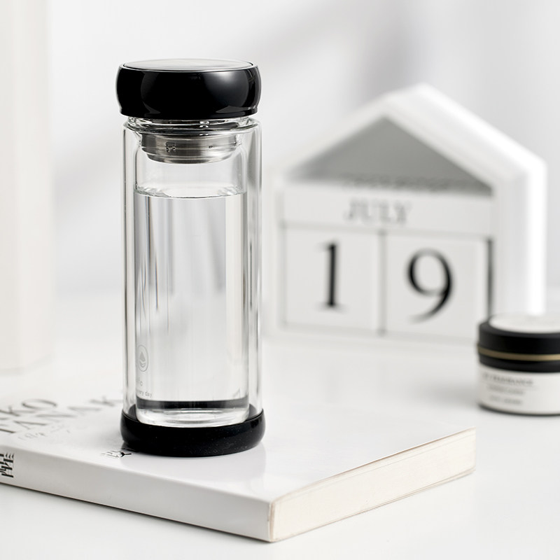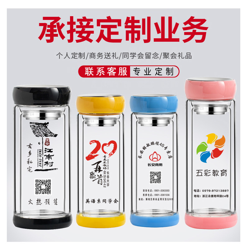 Double-layer glass household portable water cup simple and fresh forest female tea cup male cup custom wholesale logo