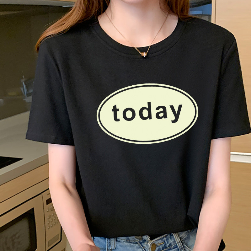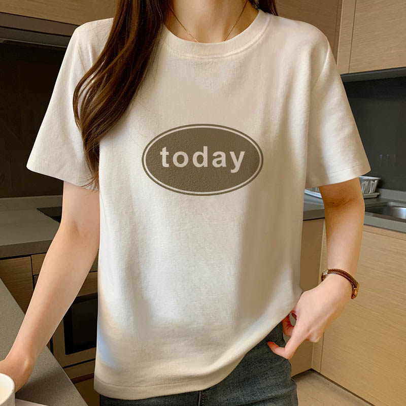 short sleeve t-shirt female loose 100 hitch student cute and comfortable and breathable white minimalist printed pure cotton harbour wind t-shirt tide