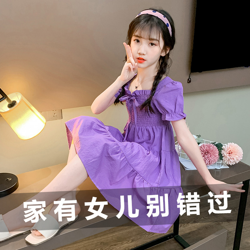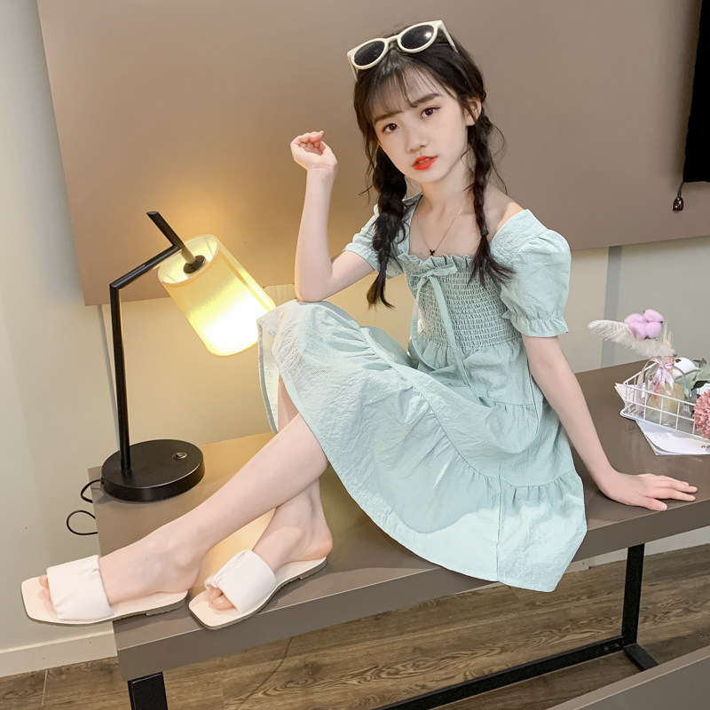 Girl Ocean Dress Summer New 2020 Children Han Edition Bubble Cuff Cake Skirt Foreign Girl Princess Dress