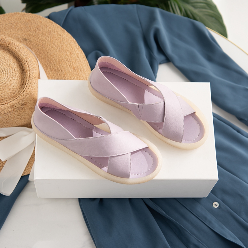 Seven steps forest purple pack with peepy toe layer cowhide soft leather flat bottom for comfort clearance 5