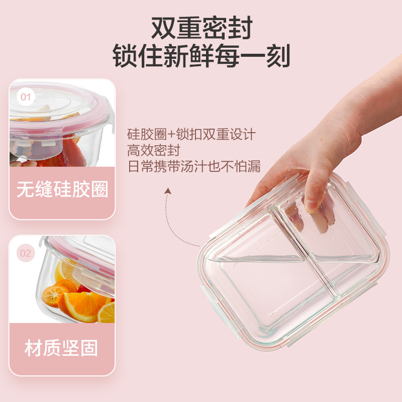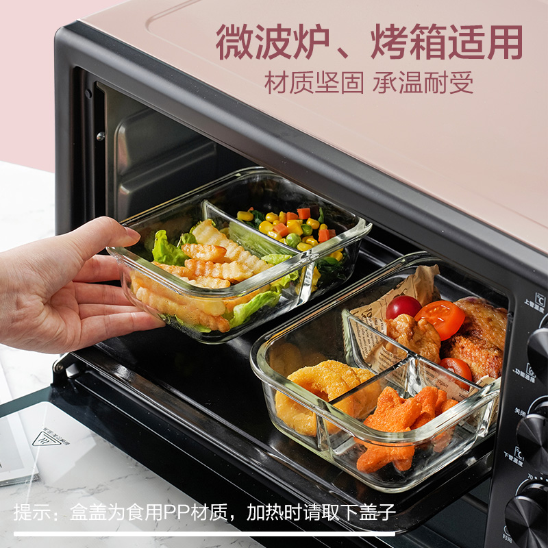 Supor glass lunch box separation type microwave oven heating office workers special bowl with lid Bento sealed fresh box
