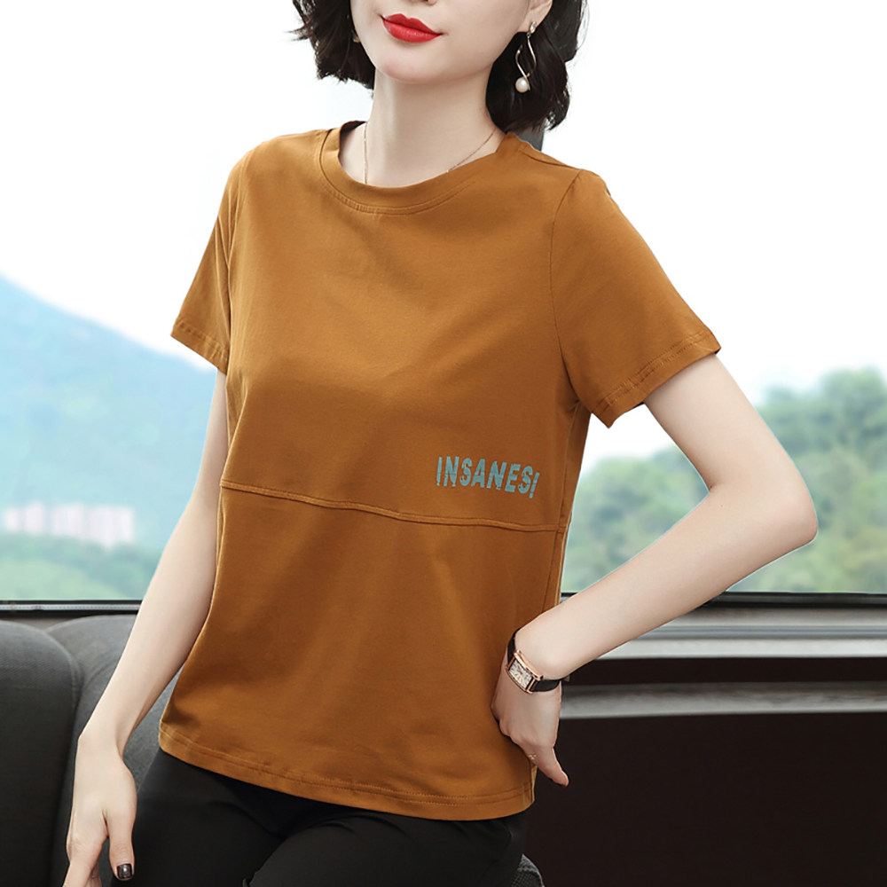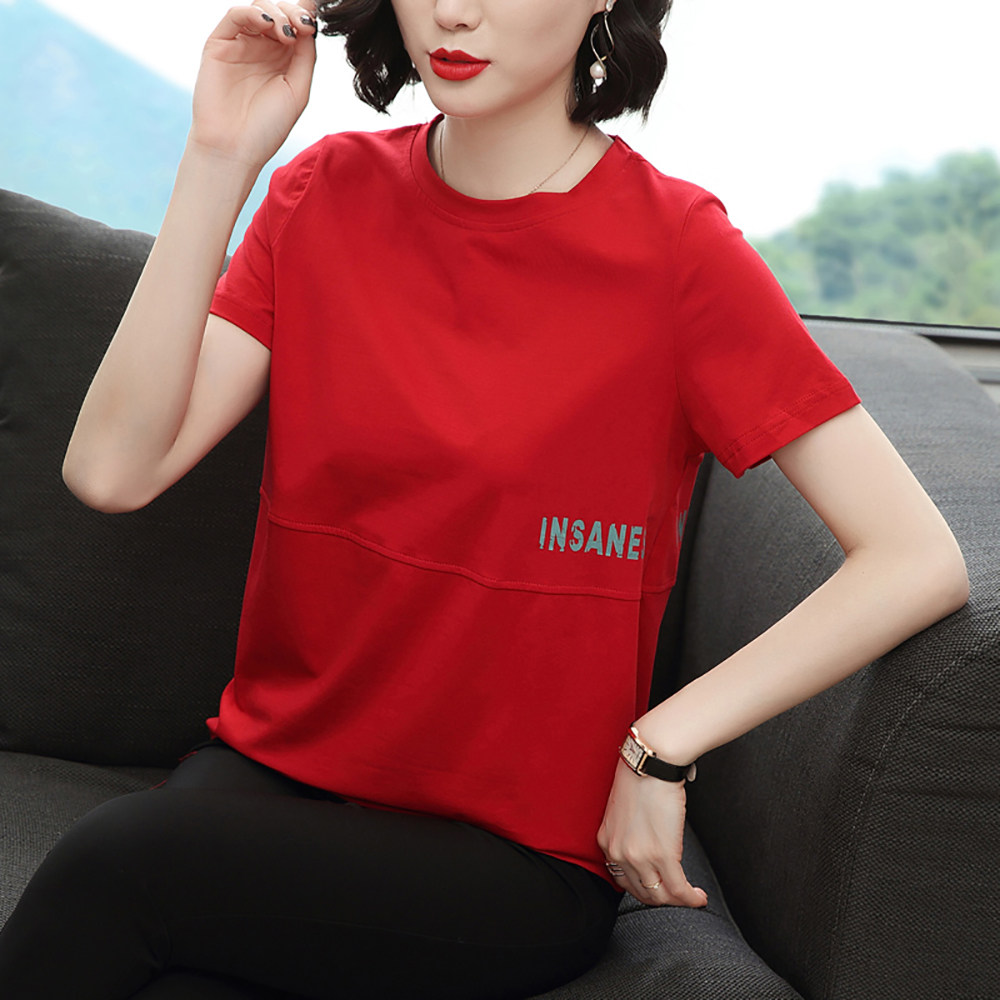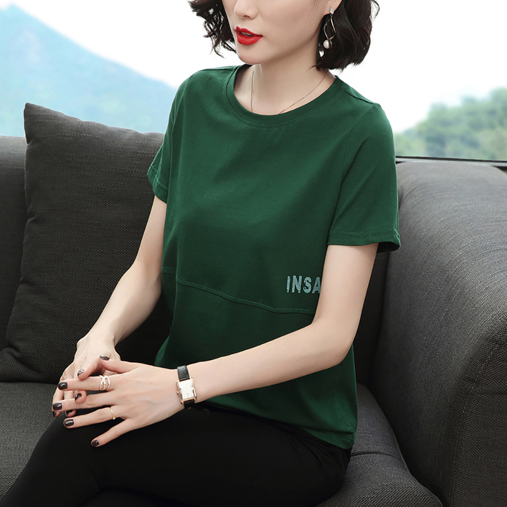 Pure cotton short-sleeved women's loose large size t-shirt women's 2022 new summer dress half-sleeved middle-aged mother printed body blouse