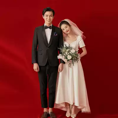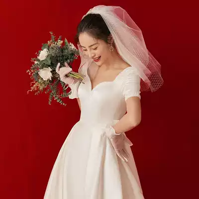 Satin light wedding dress simple French retro thin out of the gauze Tour tour Super Xiansen Department license registration small dress woman