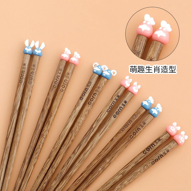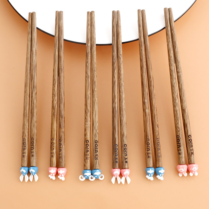 Chicken wings, wood cartoon chopsticks, home adults, a pair of solid wood creative cute high-value wood fast children