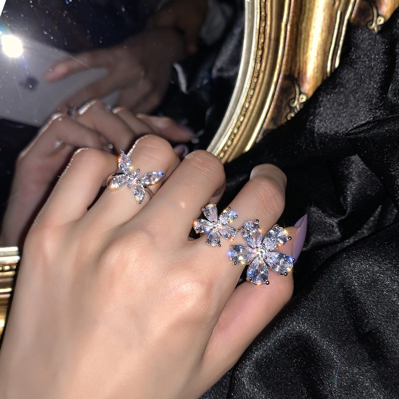 LACELIPS luxury super fairy zircon butterfly flower flower open ring female ins tide net red fashion personality ring