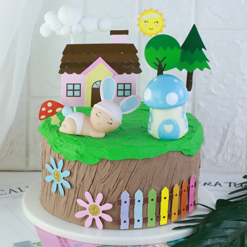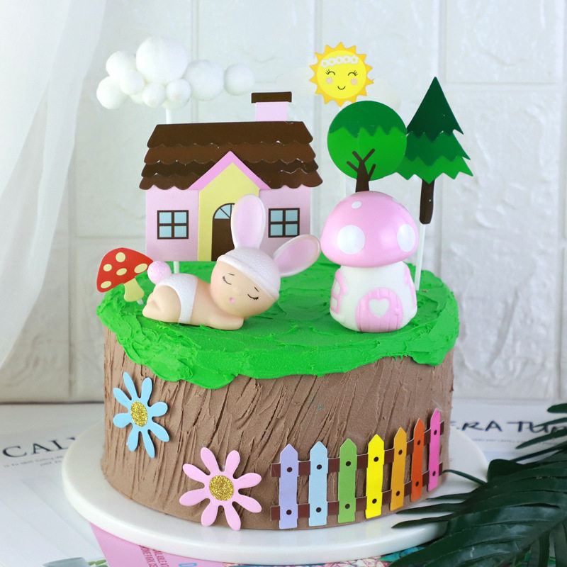 Birthday cake decoration decoration Mushroom rabbit deep forest plug-in Sun hair ball cloud house net celebrity plug-in