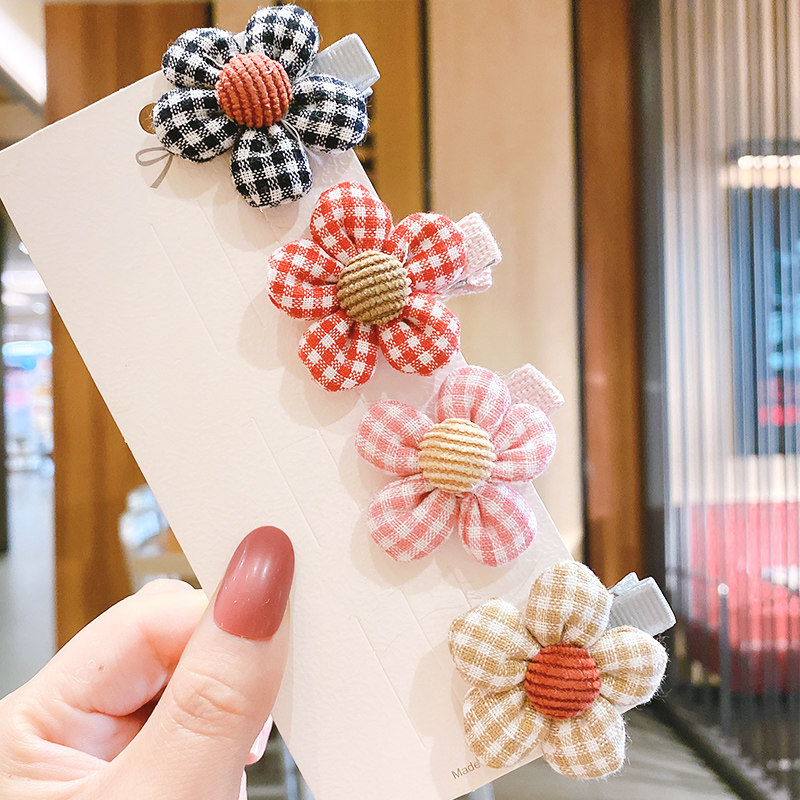 Pink green plaid five-petal flower hairpin blue orange plaid five-petal flower hairpin blue yellow plaid five-petal flower hairpin pink purple plaid five-petal flower hairpin red blue plaid five-petal flower hairpin blue pink plaid five