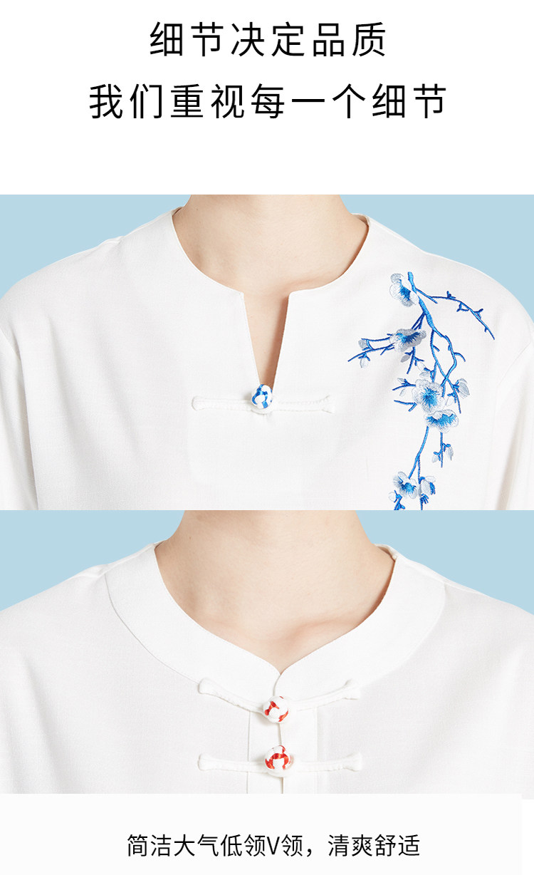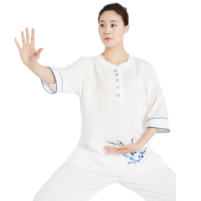 Jin Wu Tai Chi Suit Women's Short Sleeve Cotton and Hemp Seven-point Sleeve Tai Chi Suit Martial Arts Suit Embroidery Exercise Performance Suit Summer