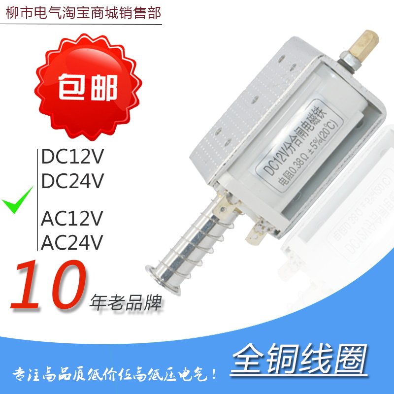 Electromagnet push-pull long stroke 35mm impact type through DC DC24V automatic reset small black clip type