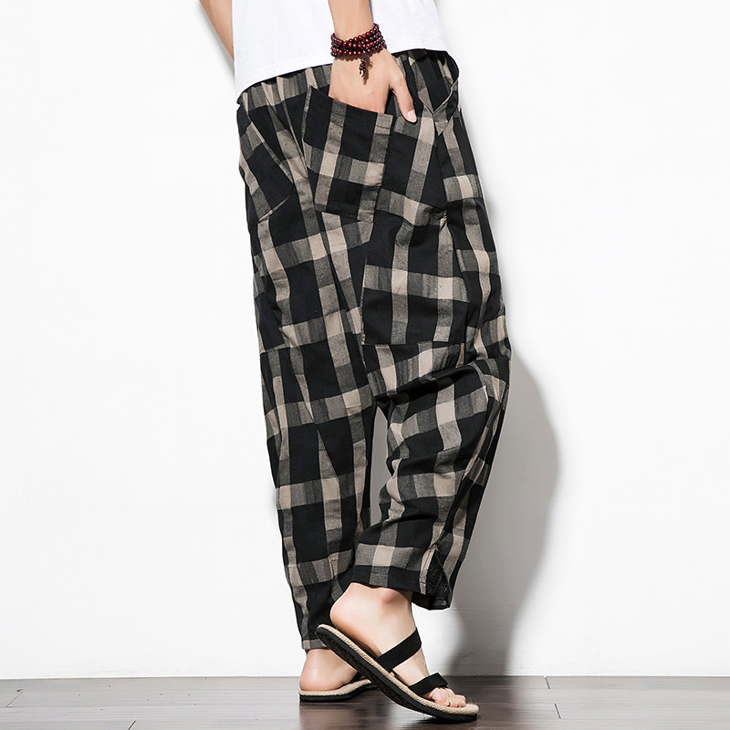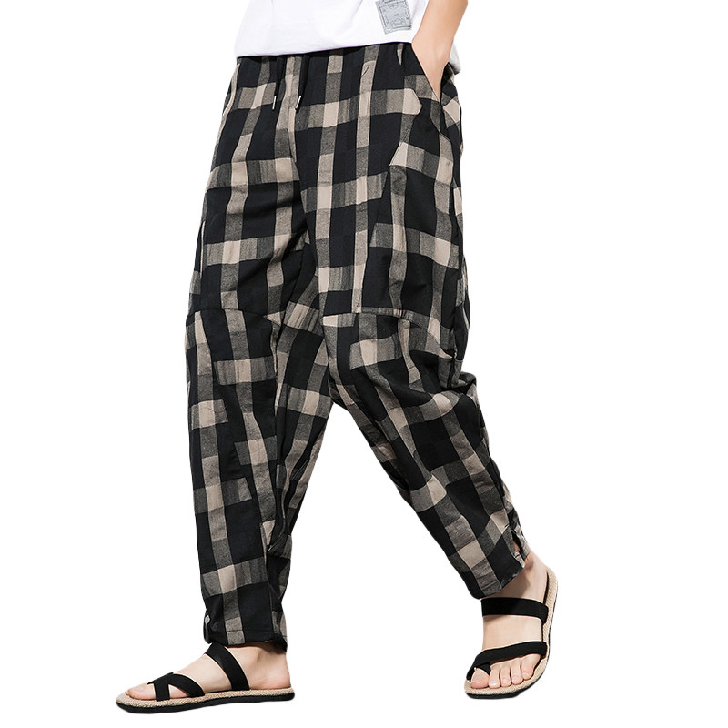High - end tide it neith BIAS summer Nepalese linen pants men Harlen nine - point loose lanterns