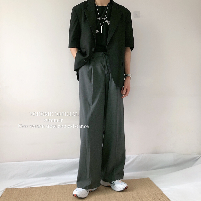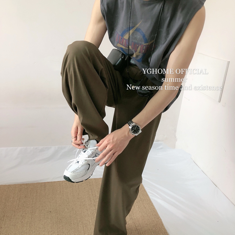 yghome pendant wide-leg pants men's straight loose Korean version casual ice silk thin trousers Hong Kong style all-match mopping pants