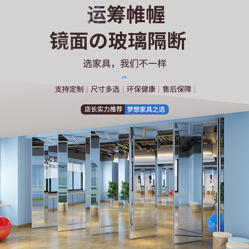 Professional mobile screen Hotel activity partition wall Room mirror sponge sound insulation board Rotating folding door partition decoration