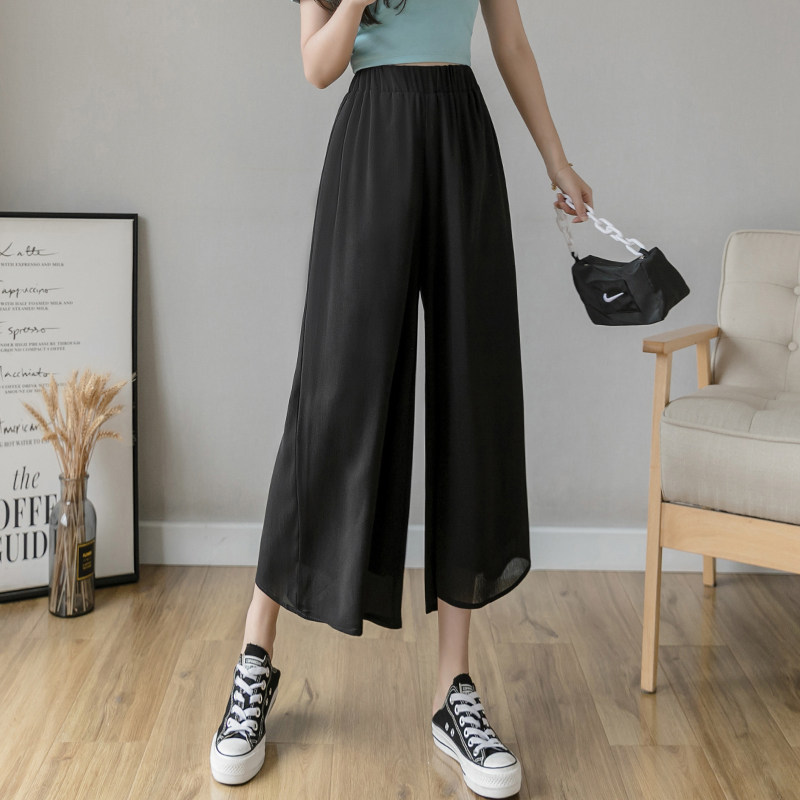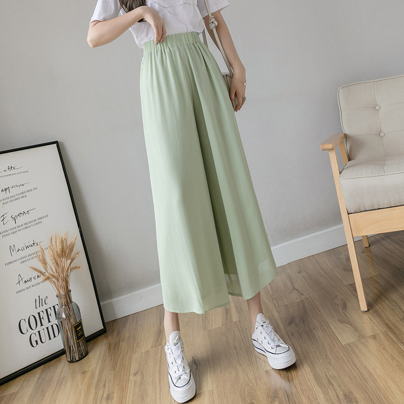 Summer thin double-layer chiffon wide-leg pants women's high waist drape 2022 new thin loose small nine-point pants