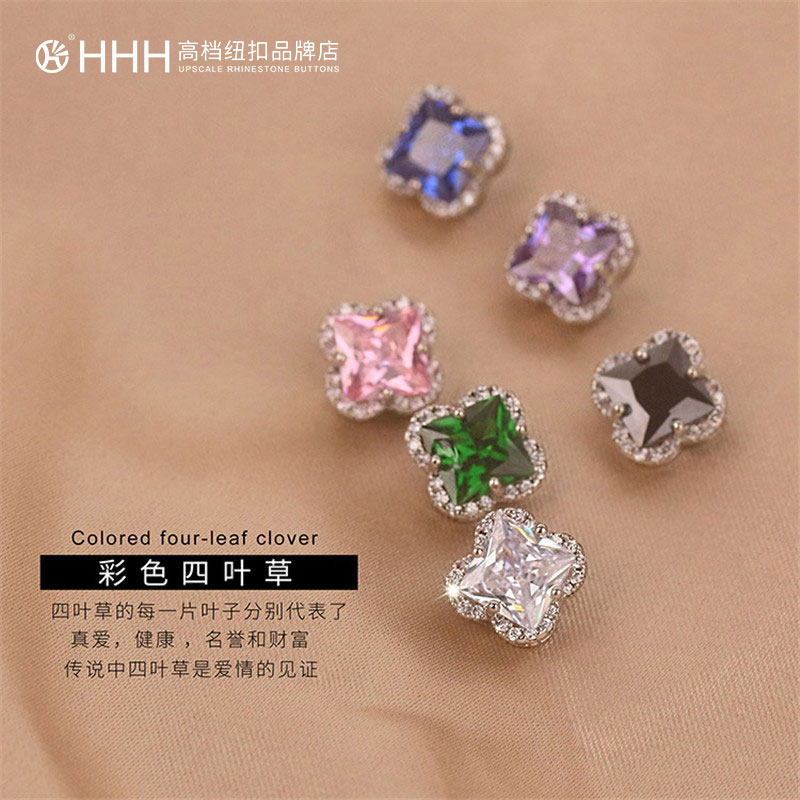 HHH high-end button-down shirt dress with diamond-encrusted crystal diamond anti-walking light decorative button accessories