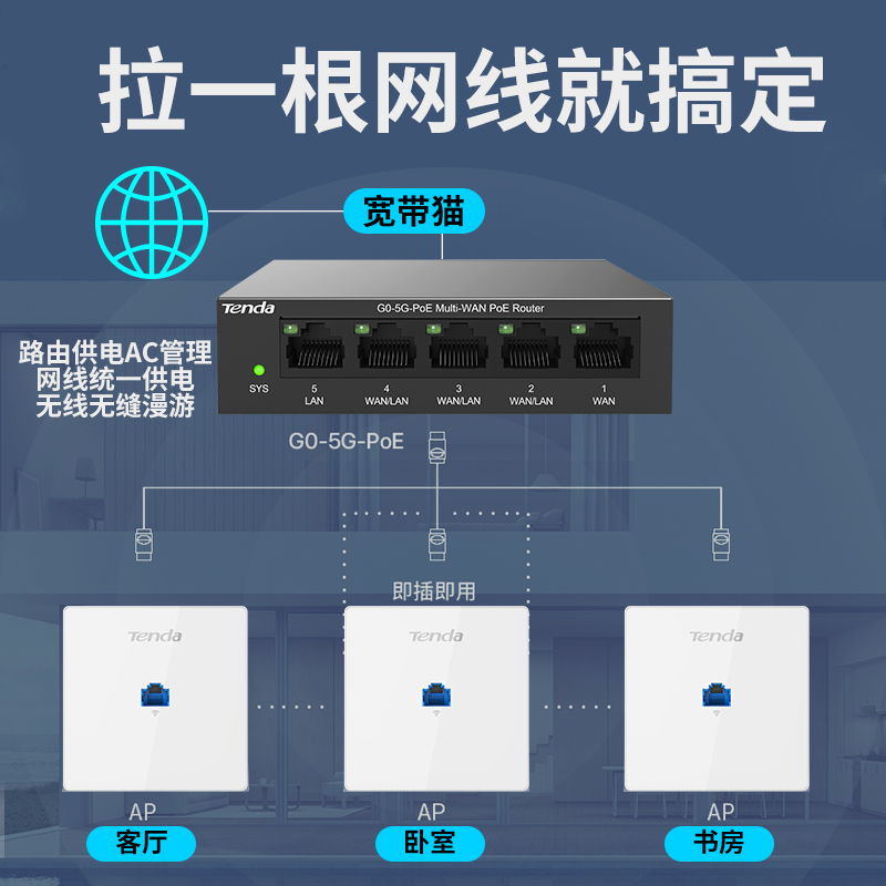 Tenda one thousand trillion wired router 86 type wall type wifi wireless ap panel into wall poe router ac all-in-one 5-port home large terrace number of full house internet coverage weak electric box networking