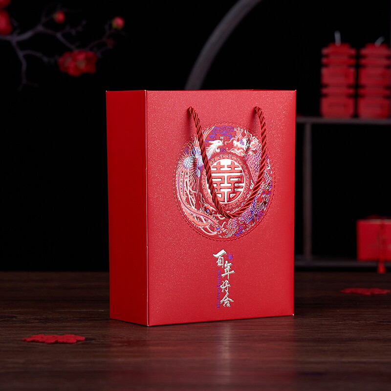 Dragon and Phoenix Gongxi handbag (high style) tassel happy letter tote bag (high style) century-old handbag (high style) happy marriage tote bag (high style) husband and wife handbag (high style) bronzing century-old good