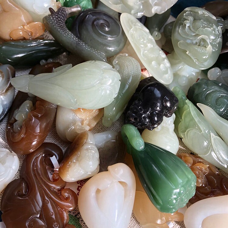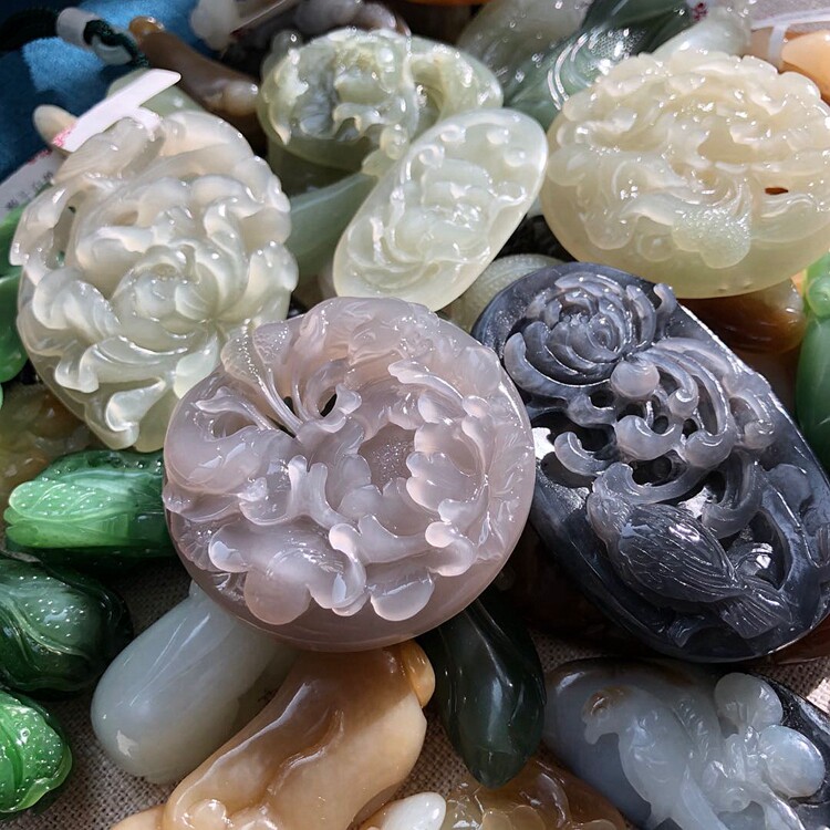 Xinjiang Hetian suet white Russian jasper Qinghai material hollow flower jade brand Ruyi Pixiu flower bird sugar fish cabbage