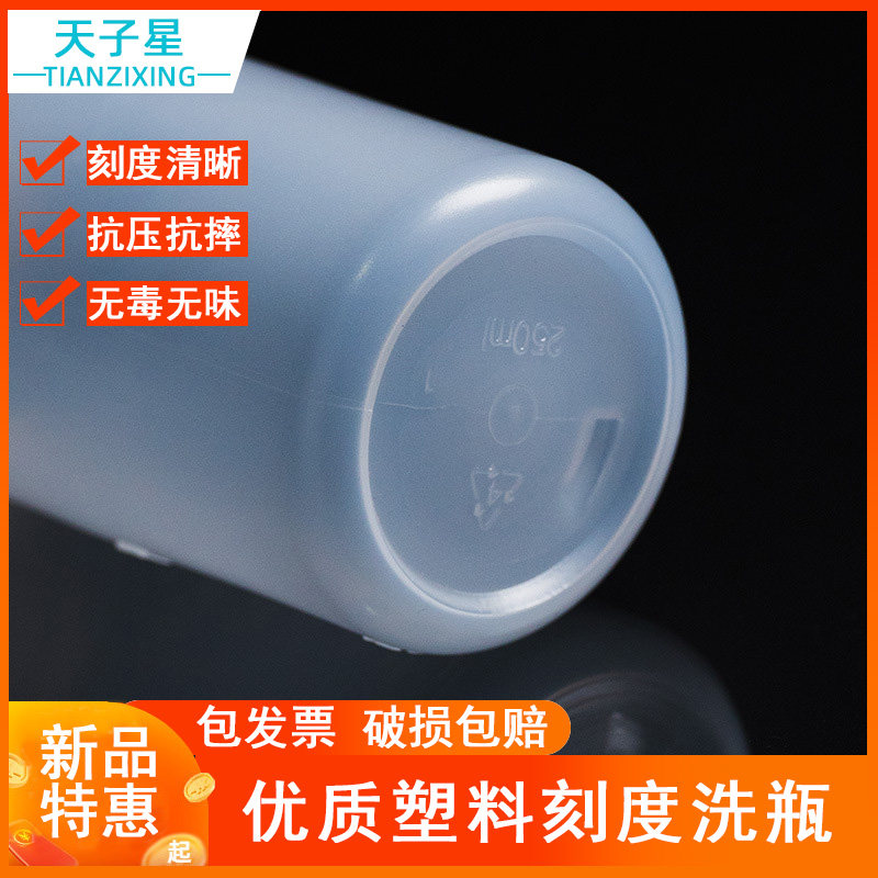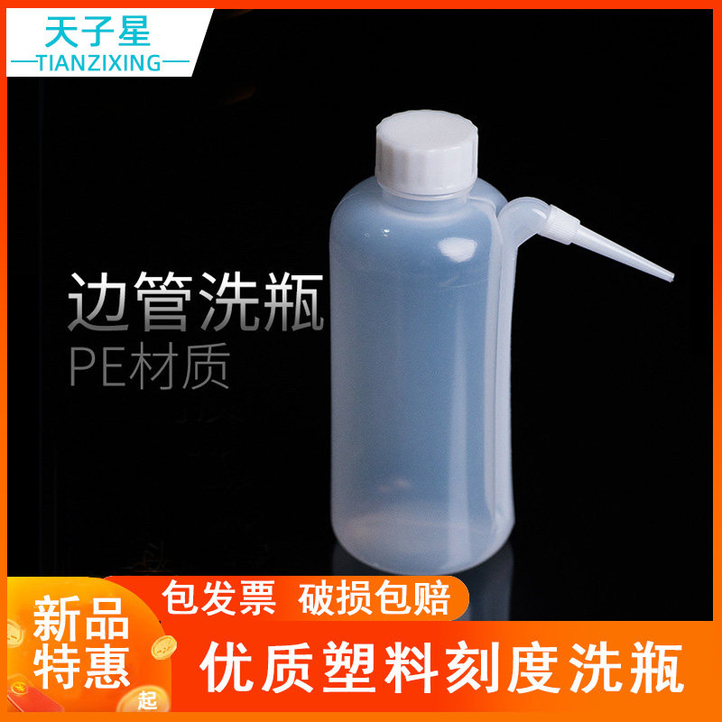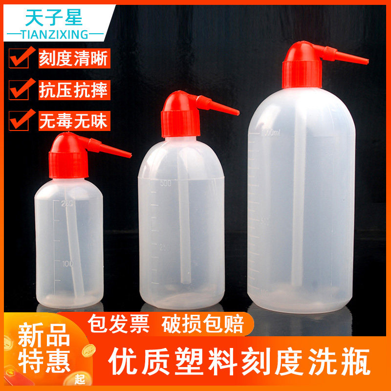 Plastic bottle elbow washing bottle cleaning bottle blowing cylinder 250ml 500ml 1000ml white head Red head washing bottle straight head Chemical teaching experiment
