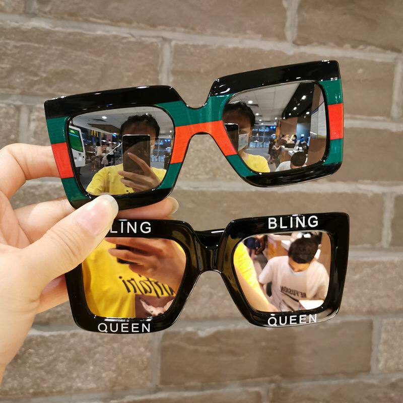 Children sunglasses male and female personality letters ink mirror children square large frame Korean version Chaotong Walking Show Street shooting Glasses-Taobao