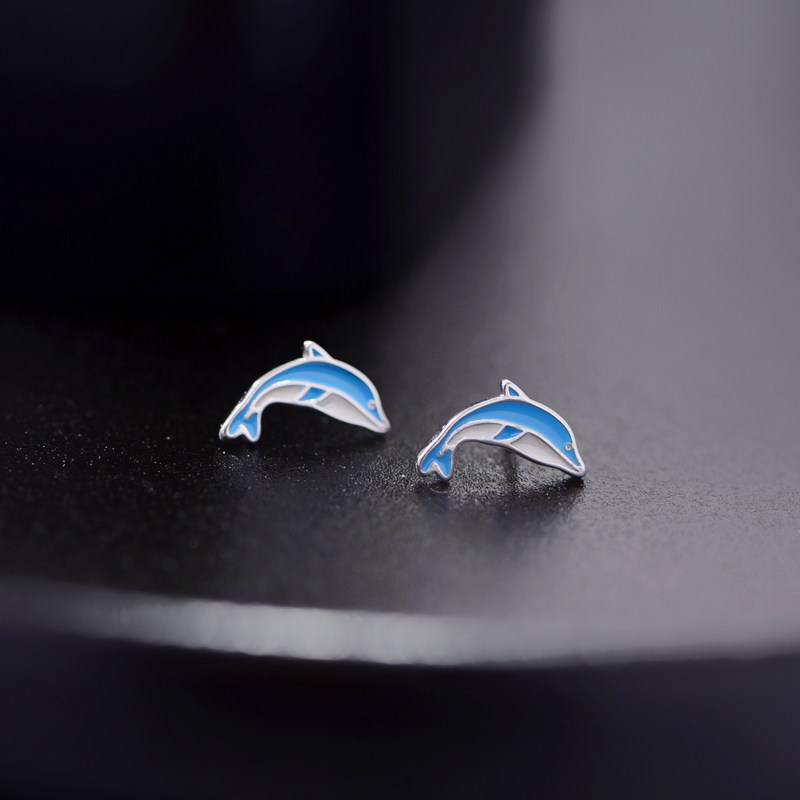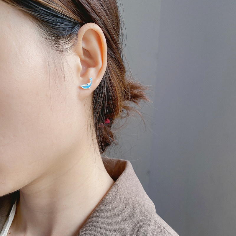 Cute dolphin ear acupuncture female hypoallergenic s925 sterling silver earrings Japanese trendy personality earrings super fairy cold wind
