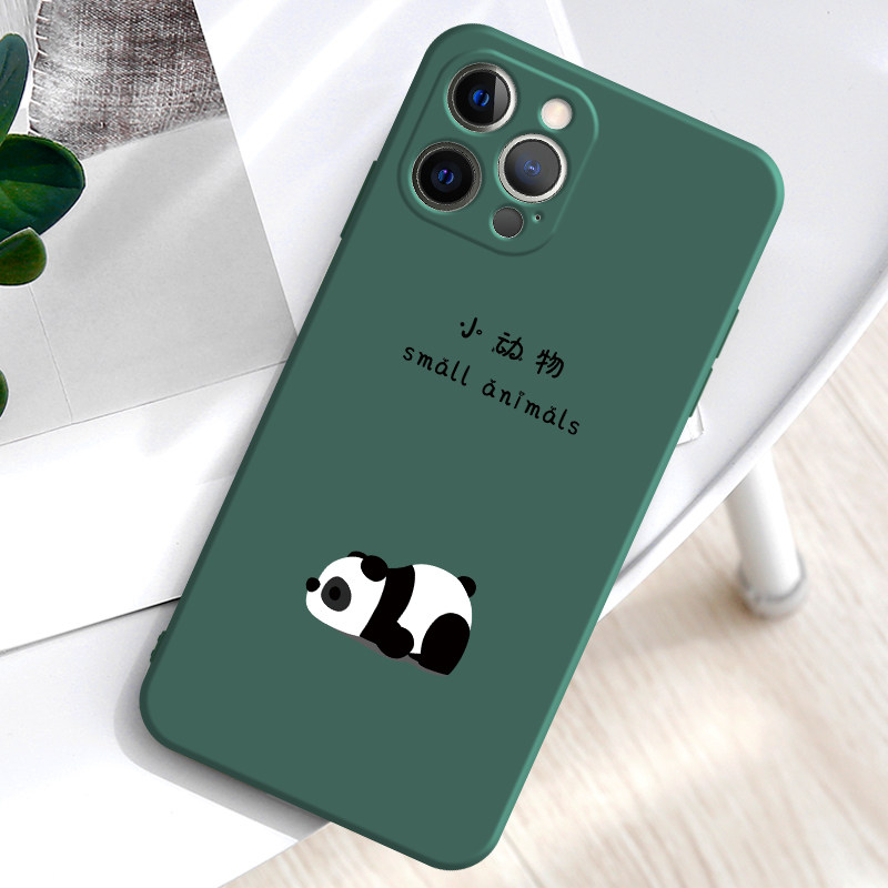 Panda illustrations apply to apple 12 phone protection shell 11promax cute couple xr male and female iphone6p liquid silicone gel 8p full package mini anti-fall 7 protective sleeve se