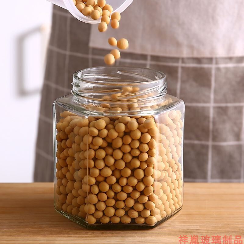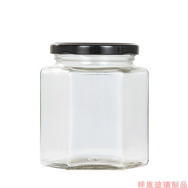 Hexagonal square bottle chili sauce sealed jar Glass household storage jar Hexagonal 280ml foam packing box