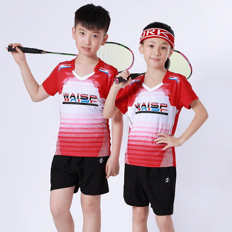 Children's short-sleeved sportswear suit boys play badminton clothes quick-drying jersey table tennis training tops girls