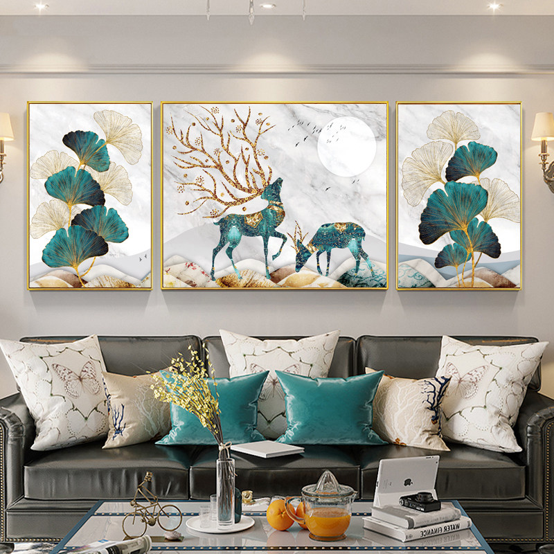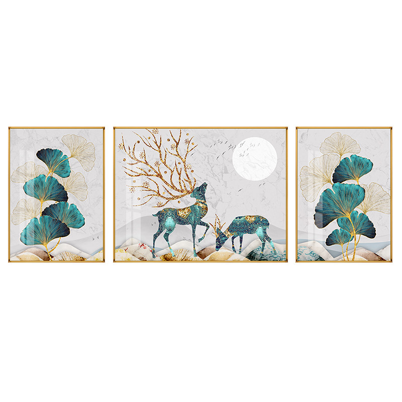 Printed cross stitch 2021 new embroidery living room simple modern large atmosphere triple elk own line embroidery handmade