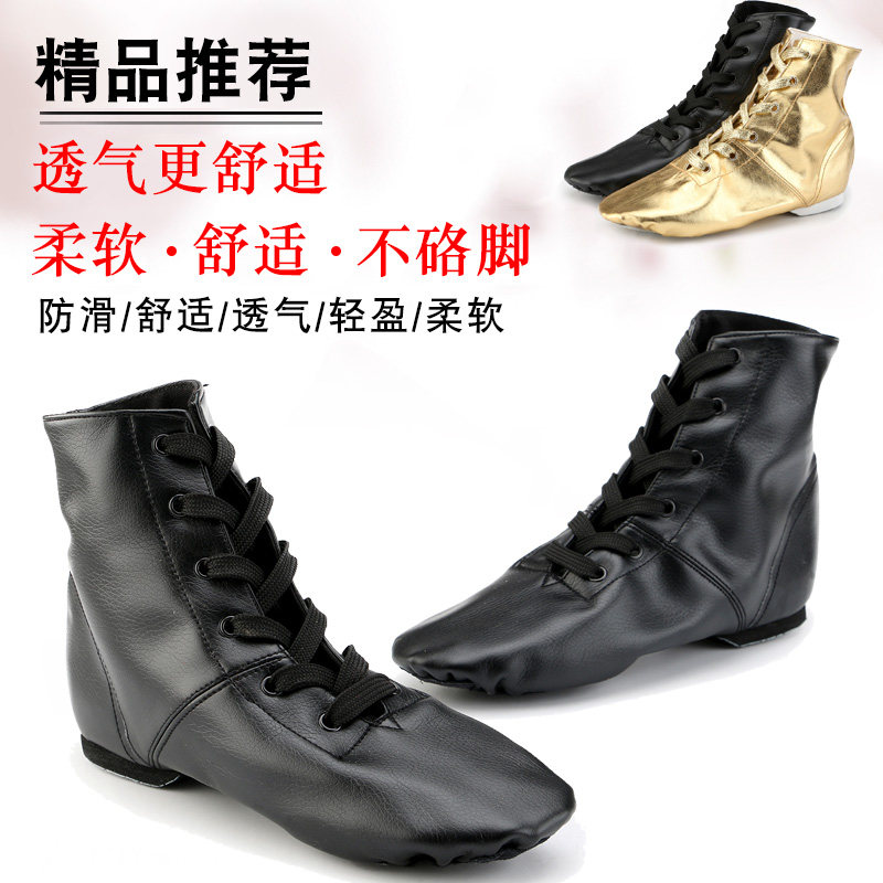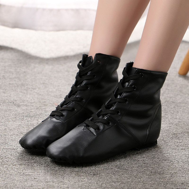 Full leather men's and women's soft-soled belt heel high-top dance shoes cowhide canvas jazz dance shoes riding boots high boots