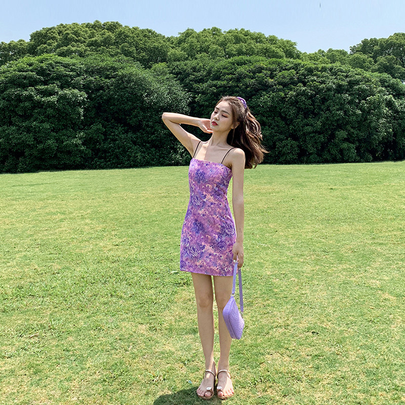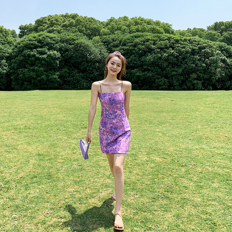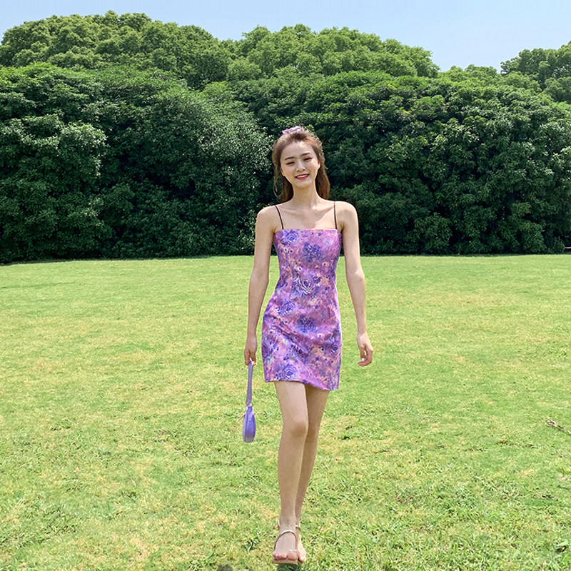Suspender skirt female 2022 new summer small French oil painting floral sweet wind dress temperament small skirt