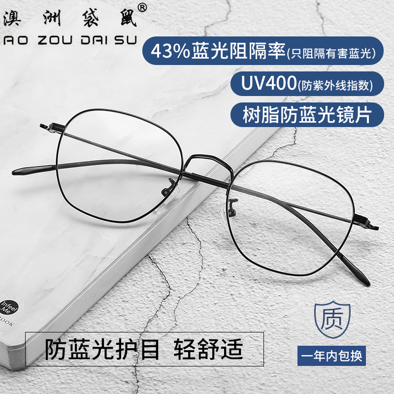 Australian Kangaroo Anti-Blu-ray Glasses Men's round frame can be matched with myopia glasses men's big frame radiation-proof computer female A10-03