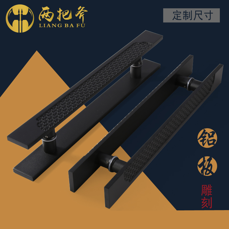 Glass door Chinese-style aluminum plate lettering handle antique office surface mounted door handle villa anti-theft double door armrest